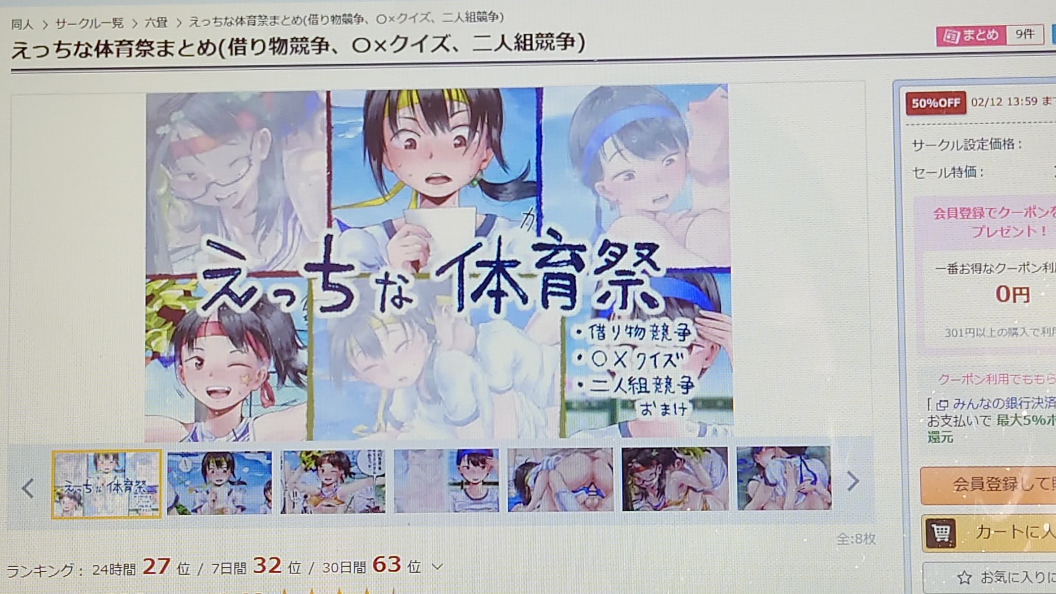 大ヒット作品「えっちな体育祭まとめ(借り物競争、〇×クイズ、二人組競争)」はDL.siteのみで配信されています。